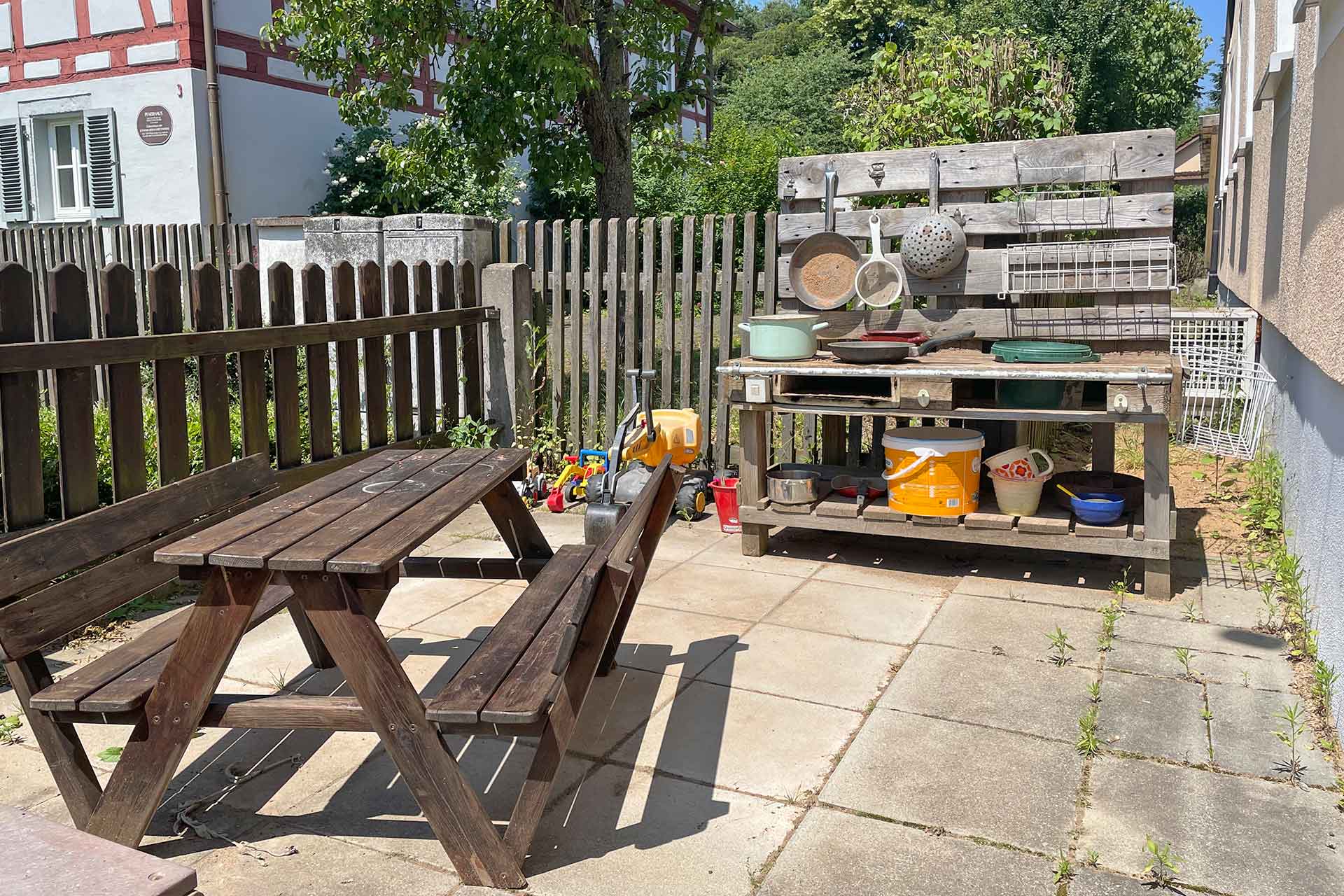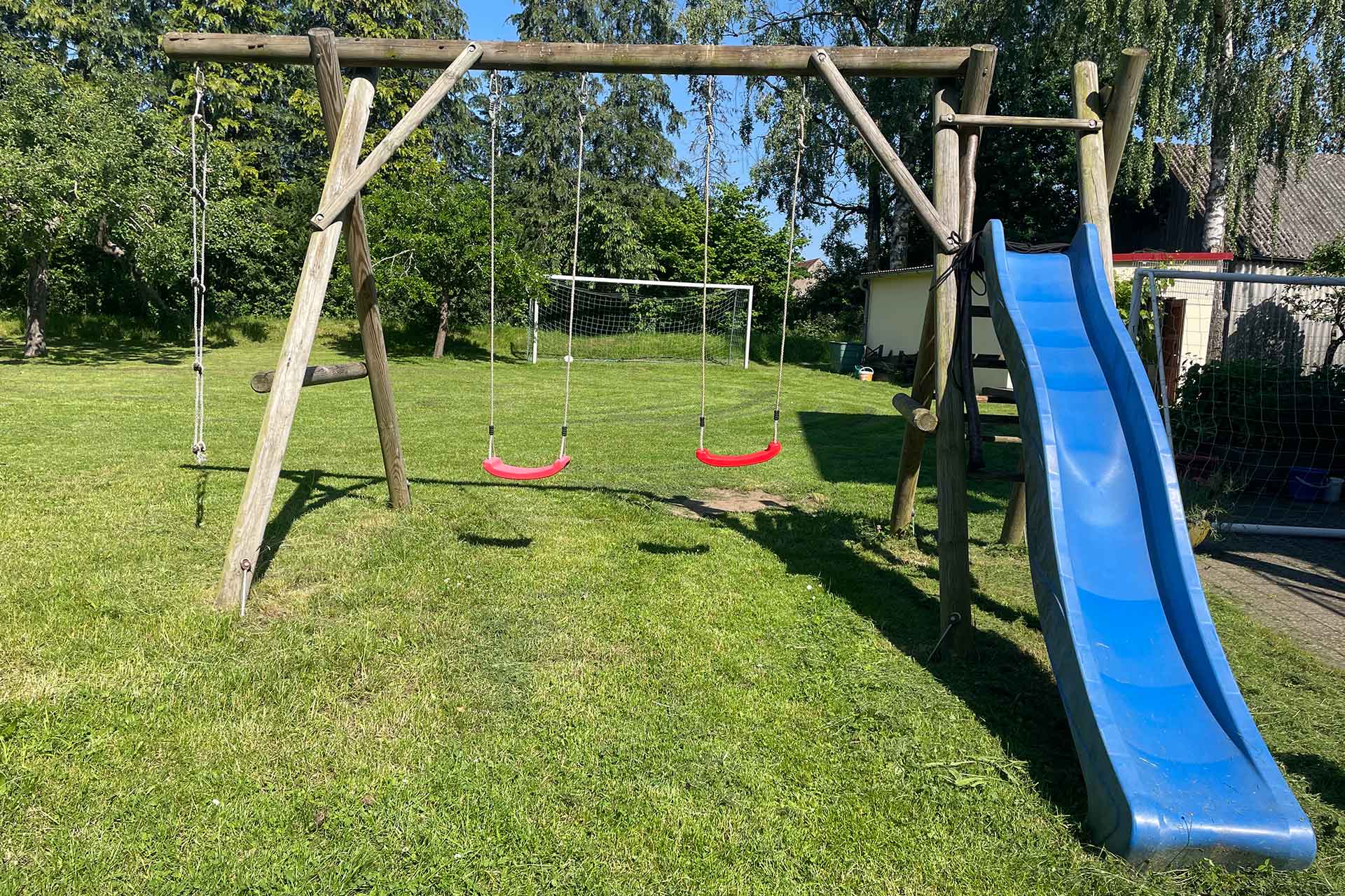 So that our little guests can also romp and play with us, our own playground behind the house offers plenty of variety - and all within direct sight of the parents. The playground is equipped with a slide, swing, trampoline, football goal and a ‘mud kitchen’, which shortens the children's waiting time for their meal.